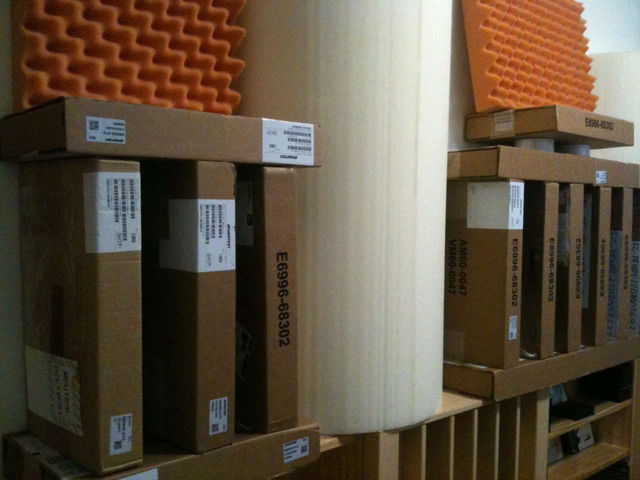 紙盒裡也是泡綿,因此這作法兼有吸音與擴散效果;